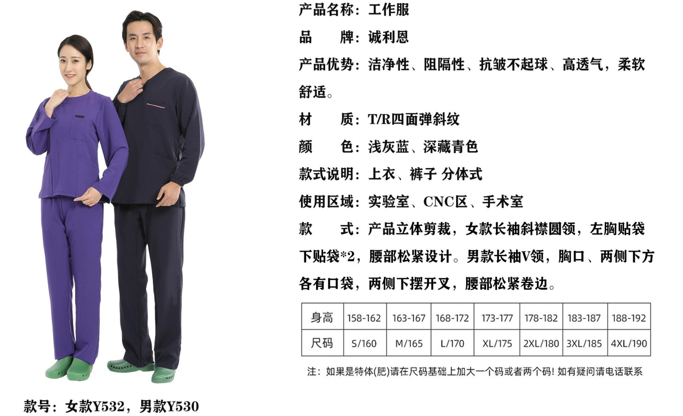 產品性能:潔凈性、阻隔性、抗皺不起球、穿著舒適、透氣,整體美觀大方