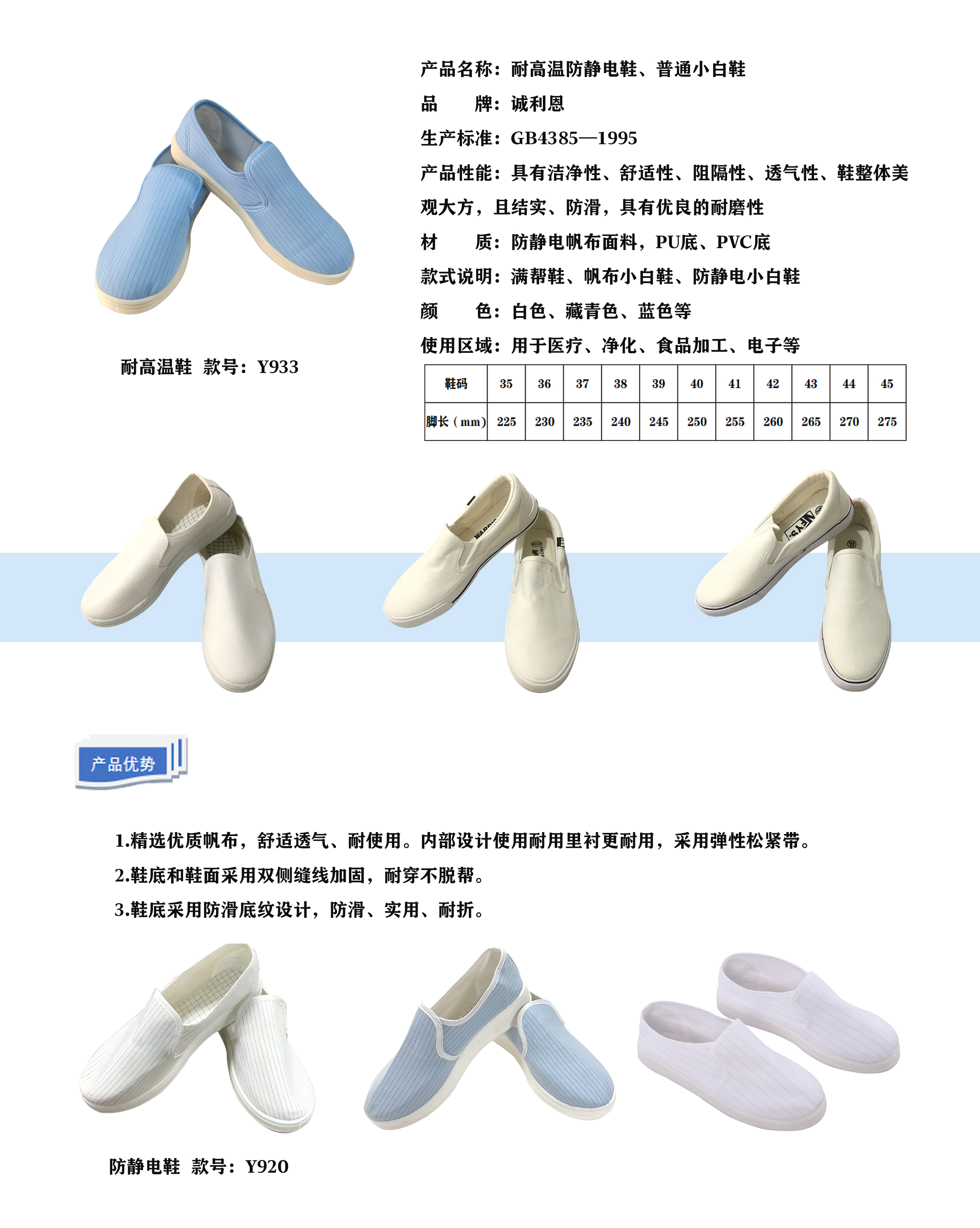 材       質(zhì):防靜電帆布面料、PU底、PVC底等
