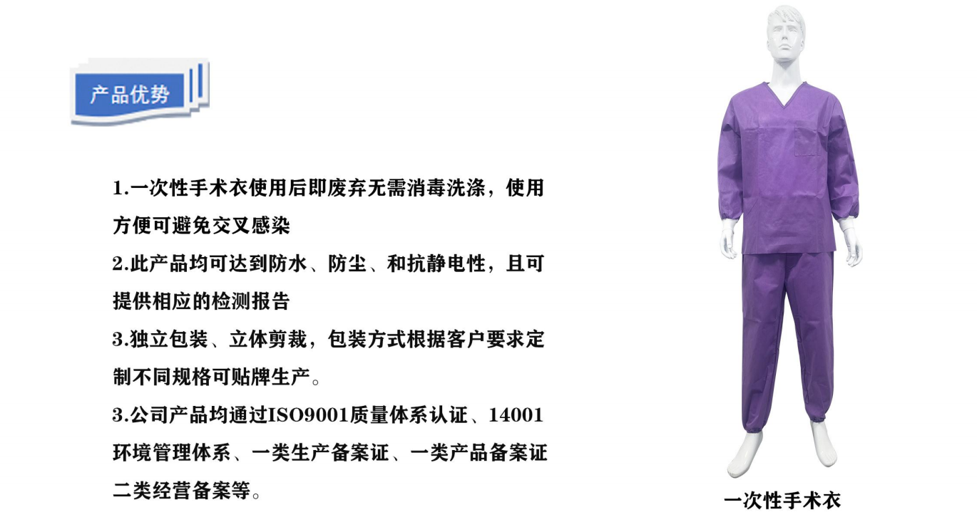 產品性能:透氣、防塵、防水、防血液噴濺、隔離病菌
