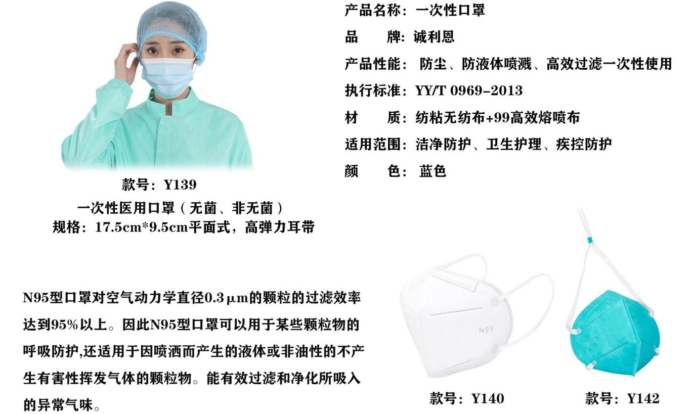 產品性能:防塵、防液體噴濺、高效過濾一次性使用